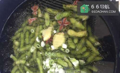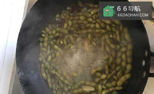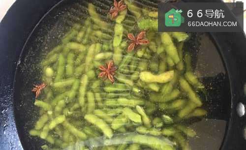 2剪好毛豆倒入锅内,放入清水,加上大料,