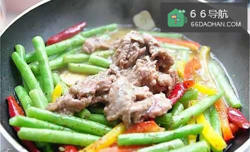 4接着再把炒过的牛肉片放入锅拌炒,最后调味。