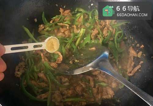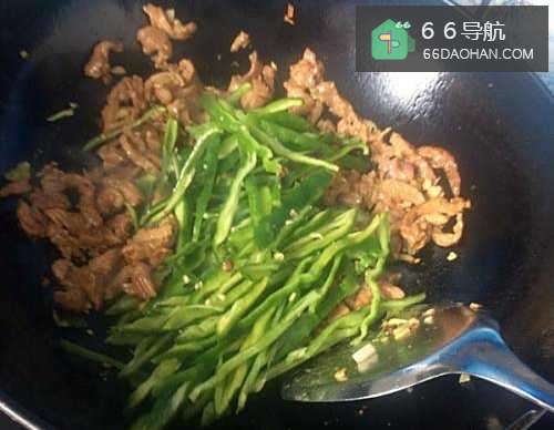 5把青椒放入锅内和肉一起炒,再加一点凉水拌匀,然后你就可以尝一下味道了,根据自己的喜好再添加一点盐,不能加多了肉里面本身就加了盐