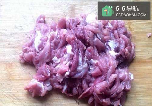 2猪肉洗净切成筷子粗细的丝,放到碗里加入少许盐、醋、料酒、老抽、白糖、生粉拌匀腌渍10分钟左右