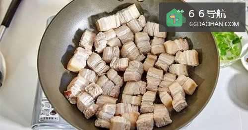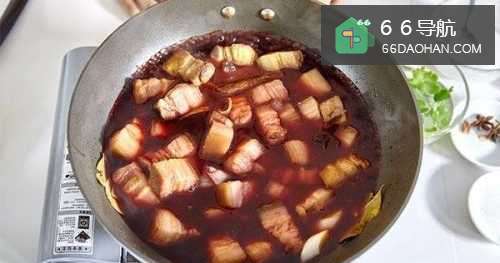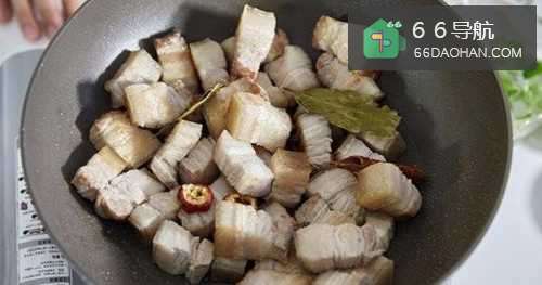 肉块下锅一定要小火慢炒,直至五花驾肤获肉自身酱捕油脂渗出、呈金黄色。