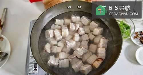 33.烧一锅开水,水开后肉块下锅焯水去腥、固定形态,两分钟左右捞出。