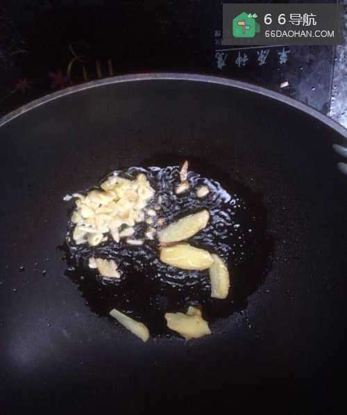 再开火,加入适量的食用油,油温升高后,将姜片和蒜末下锅炒香;
