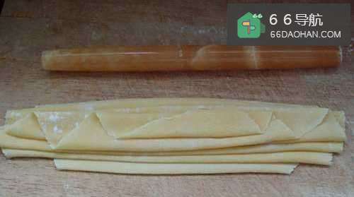 4将擀好的面皮,用刀切成大小一致的云吞皮,然后包上你喜欢的馅料就成了美味的云吞。