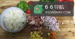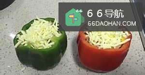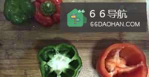 2彩椒从1/5除切除盖子,把籽和内部白色蒂除尽,洗干净备用。