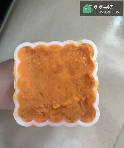 6最后山药泥和番薯泥,按照一层番薯,一层山药,再一层番薯,依次塞入模具中(这里使用的是月饼模具)