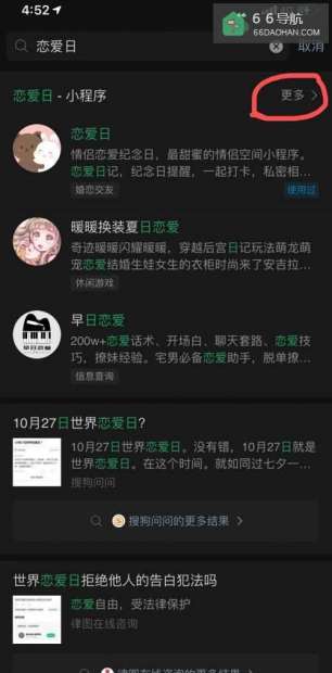 3第三步如果没有找到这个恋爱日小程序,那么就先点击更多,在更多里面查找