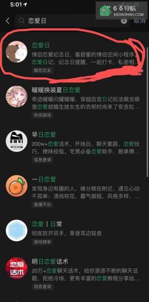 第一步打开微信,在首页下拉进入页面,点击搜索,输入“恋爱日”三个字