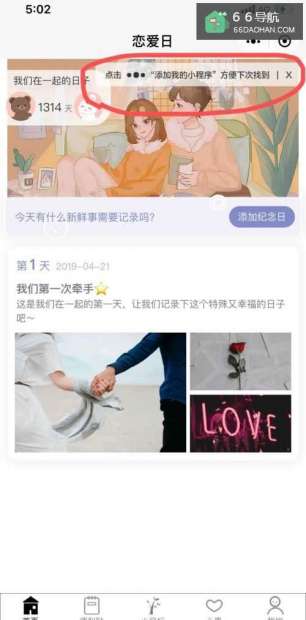 “恋爱日”这款小程序最近小编才发现,比较简洁,不会有太多收费项目和其他商业化严重的不同。