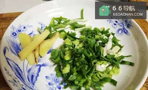 2葱切段,生姜切片,蒜切成蒜花,备用。