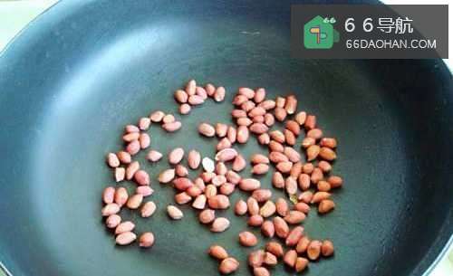 3锅加热后倒入花生米,不断翻炒至能轻松去掉皮即可盛出
