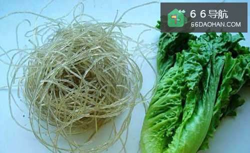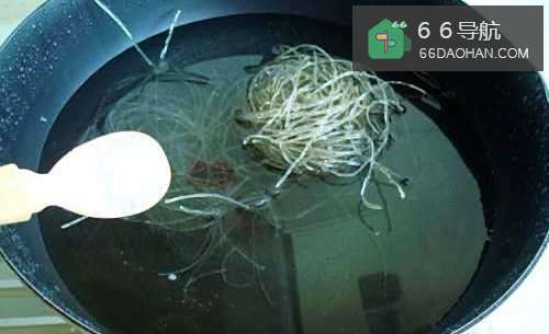 5锅里倒入适量冷水,把红薯粉条倒进去,再放适量的盐,水煮开后再添加少量冷水,等待第二次煮开,煮好后过凉水备用