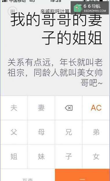 5用起来也非常之简单,比如我们想要知道我们管自己的“哥哥的妻子的弟弟”叫什么,我们可以在计算器里依次点击“兄、妻、弟”就可以了,点击后就会告诉我们该管他叫什么了。