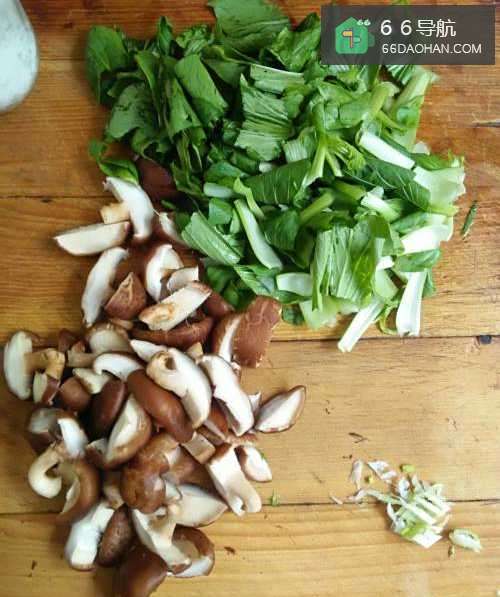 买来香菇和油菜,把油菜一片片分开,把香菇根上的硬块去掉。