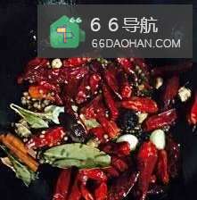 然后加入花椒及干辣椒,用小火慢慢炒出花椒和辣椒的香味。