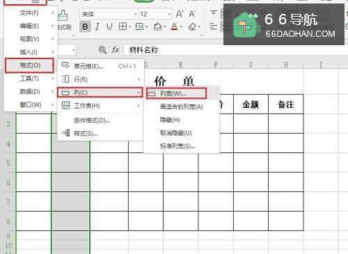 4然后选择格式——列——列宽