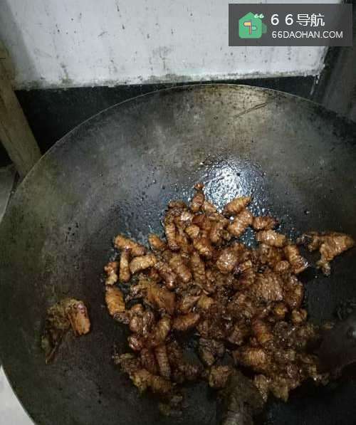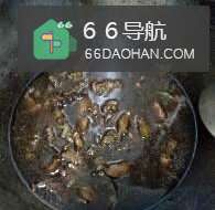 5然后将白糖倒入油中,熬糖色;(注一定要小火慢熬,以免熬过,味道就会变苦)