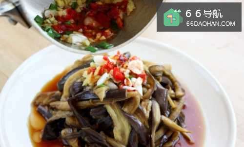 9趁热将香料油浇到茄子上,这道菜就完成了。