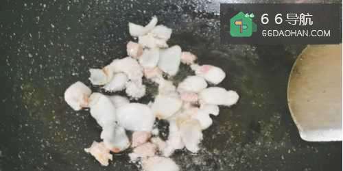 4起锅热油,先把猪肉放入锅中中火翻炒片刻。