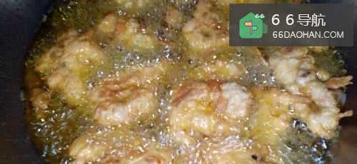 8锅中倒油 油烧到八成热的时候下入裹好面糊的鸡叉骨