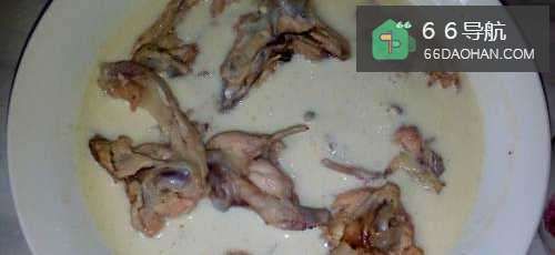 7把煮好的鸡叉骨倒入面糊中