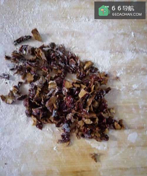 10第十步,接着铺上红枣然后卷起来,切成两块。