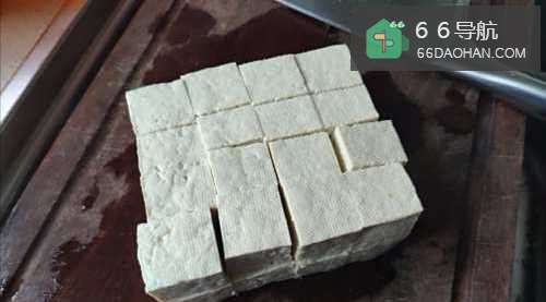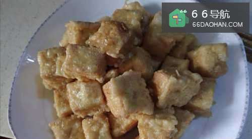 5锅里倒适量油,油热后把豆腐块码放进去薪国炸制,中途轻轻翻动,让每个面都炸至上色