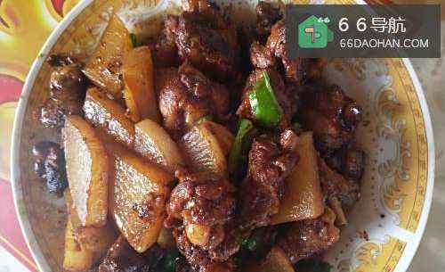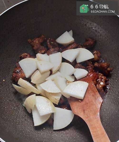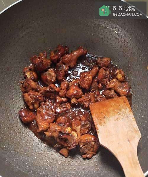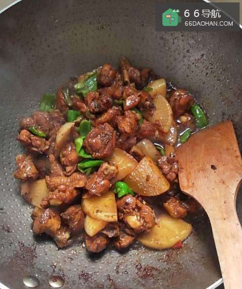 6如图,萝卜、鸡肉已经入味,加入适量鸡精翻炒均匀后关火。