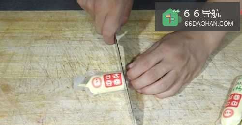 22、取出日本豆腐,一个切成五段,取一个鸡蛋打散,蛋液里加少许盐调味。