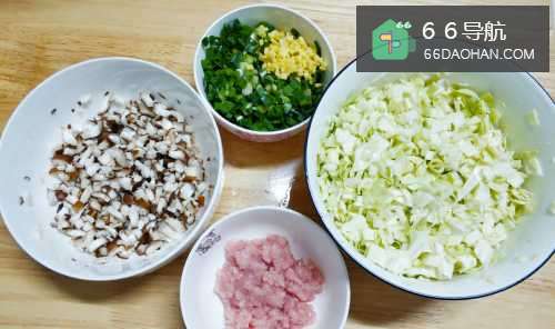 2把包菜、香菇、葱姜蒜 分别切碎,瘦肉剁成肉末,然后分别放入适量盐,搅拌均匀后放置1020分钟。