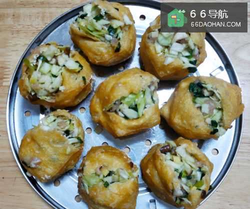 5蒸锅中导入适量的清水,然后把酿好的豆腐放到蒸锅中,盖上锅盖,大火蒸约1015分钟。