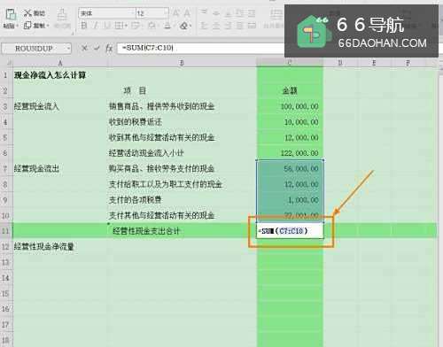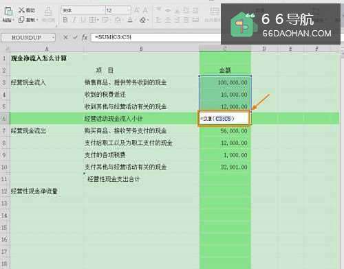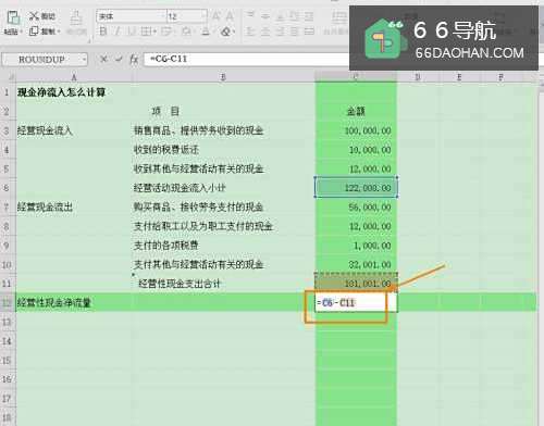 3选择单元格【C12】,输入公式【=C6C11】,点击【Enter】即可。