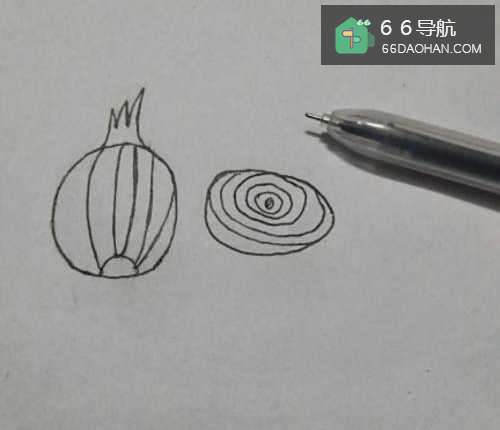 5第五步在洋葱旁边画出一个切开的洋葱,螺旋的线条,如下图所示
