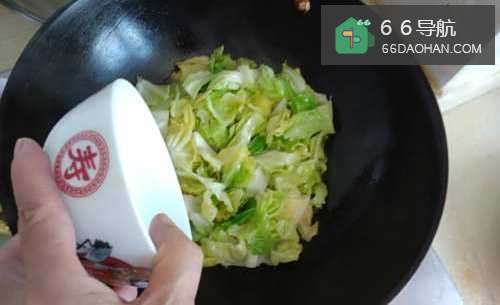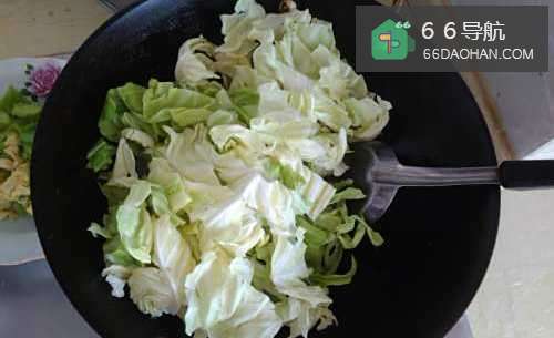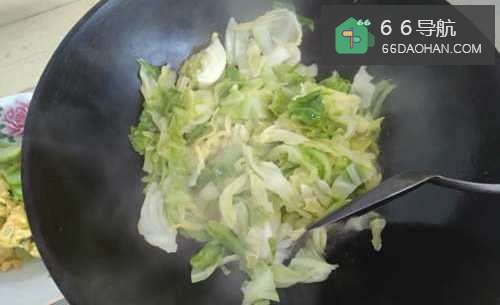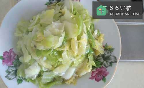 4翻炒均匀,爆至叶片有少量焦色,使牛心菜更香更糯,如图