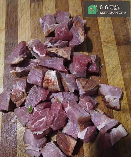 如图,首先准备新鲜牛肉,洗净后切成小块备用。