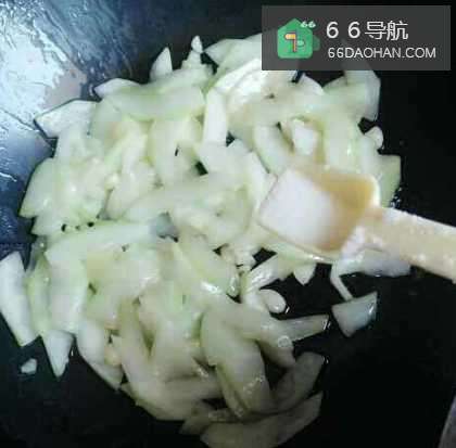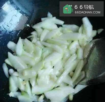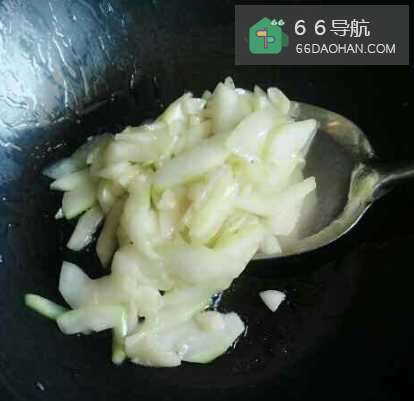 3、然后,在锅中放蒲瓜翻炒片刻。