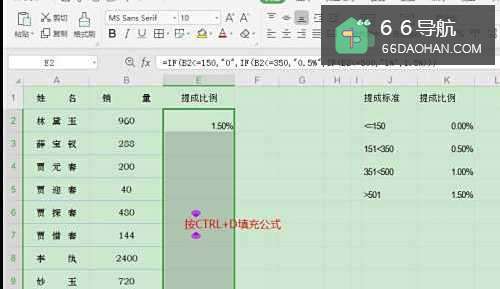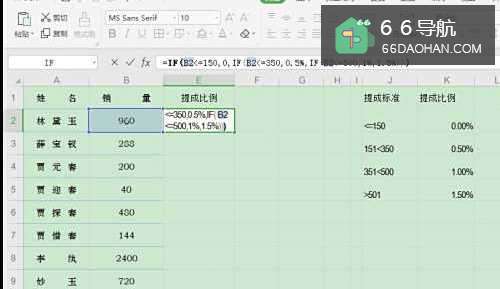 3在“IF公式”中,根据条件输入嵌套公式【(B2<=150,0,IF(B2<=350,0.5%,IF(B2<=500,1%,1.5%)))】;