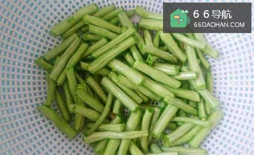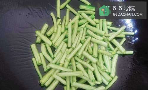 5锅内倒油,煸香蒜末后,放入豇豆段翻炒片刻,倒入和食材持平的热水煮一会儿。