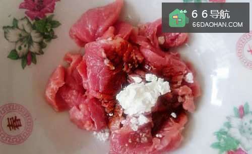 1瘦肉切片,用料酒,生抽,淀粉和食用油,腌制10分钟。