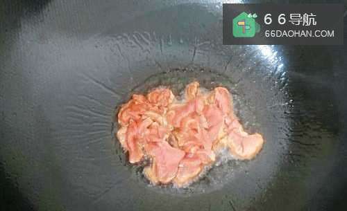 4热锅倒油,放入腌好的瘦肉煸炒至变色后盛出。