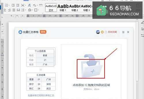 3在“批量汇总表格”对话框中,点击【添加文档】;