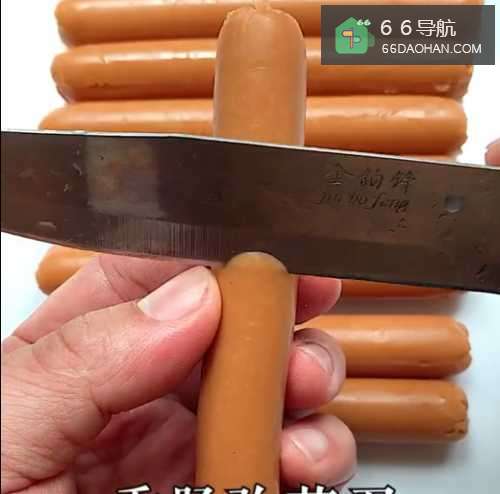2●第二步将备好的香肠去外包装,并且切出简单的刀花。