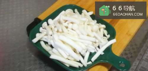 首先,我们将白玉菇、胡萝卜、青椒切成条状;