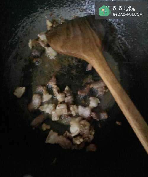4开火,加入适量的食用油,将五花肉入锅煎出油;