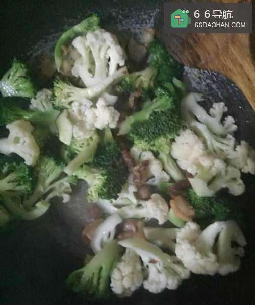 2将花菜和西兰花放入锅里,加水煮到八成熟,后捞出沥干水分;