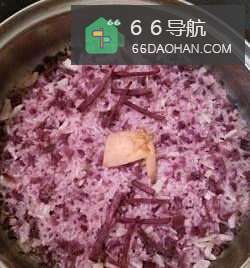 4加油酒醋各两小滴,盐适合,加清水刚好末淮山紫薯糯米下锅,和平时煮饭加水一样,中小火煮微干水