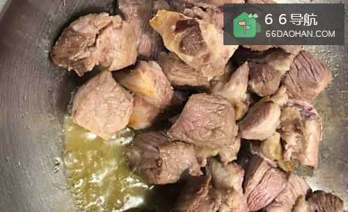2锅热,放油1大匙约15ml,放肉炒至表面焦黄