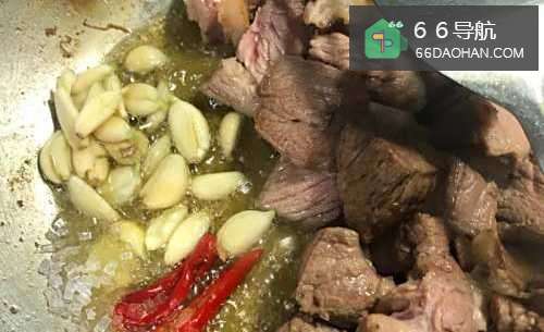 3放蒜头辣椒和糖,翻炒几下有蒜头香味出来即可