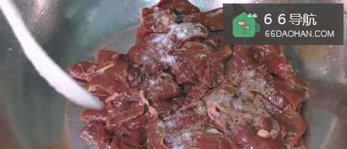 2②将浸泡后的猪肝反复冲洗后切成片,加料酒、酱油、干淀粉拌和,放置15分钟;