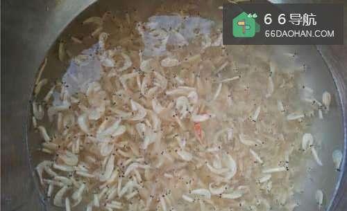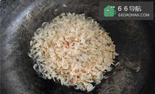 5炒锅烧热,放入油烧热,,放入虾皮炸一下。